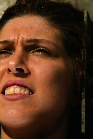 Dark haired babe Frankie Vargas tied up in bondage and sprayed with water while in hot aquaphilia.