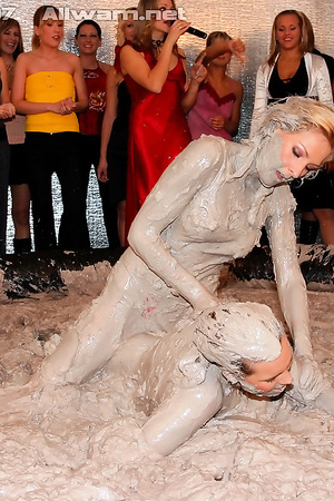 Aggressive party wrestler Lea Casper is covered in sticky mud from to to toe