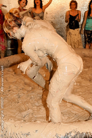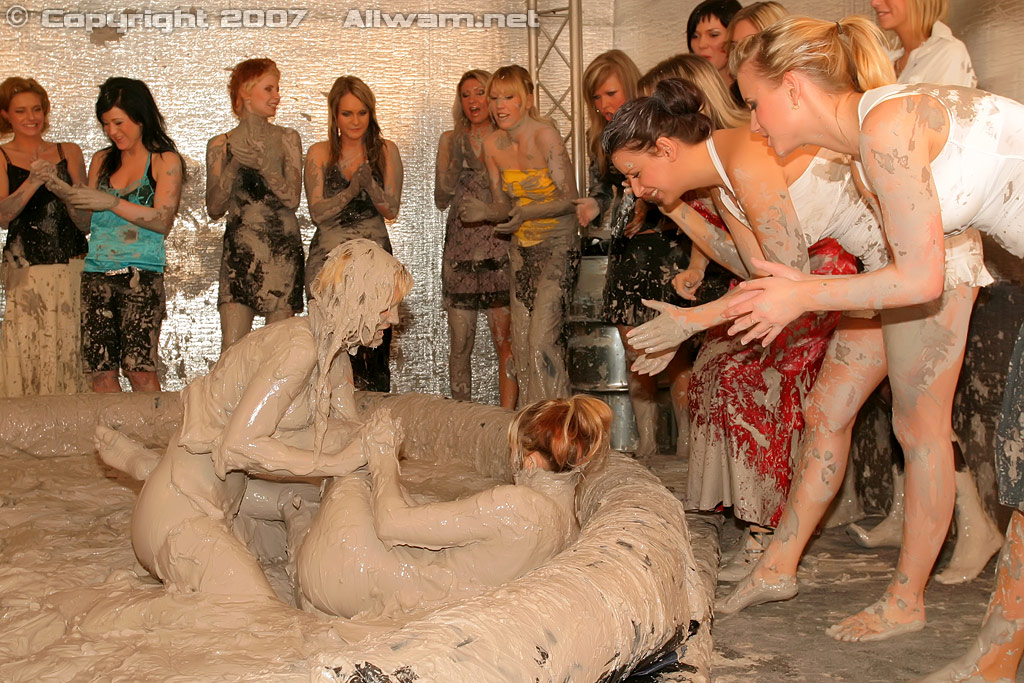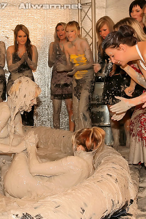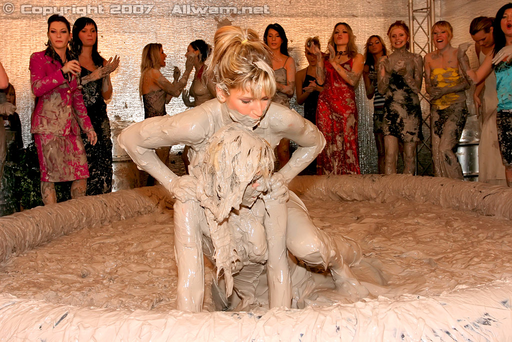 Bikini Girls Sara And Cameron Gold Wrestle In The Mud In Front Of Dozens Of Curious Women