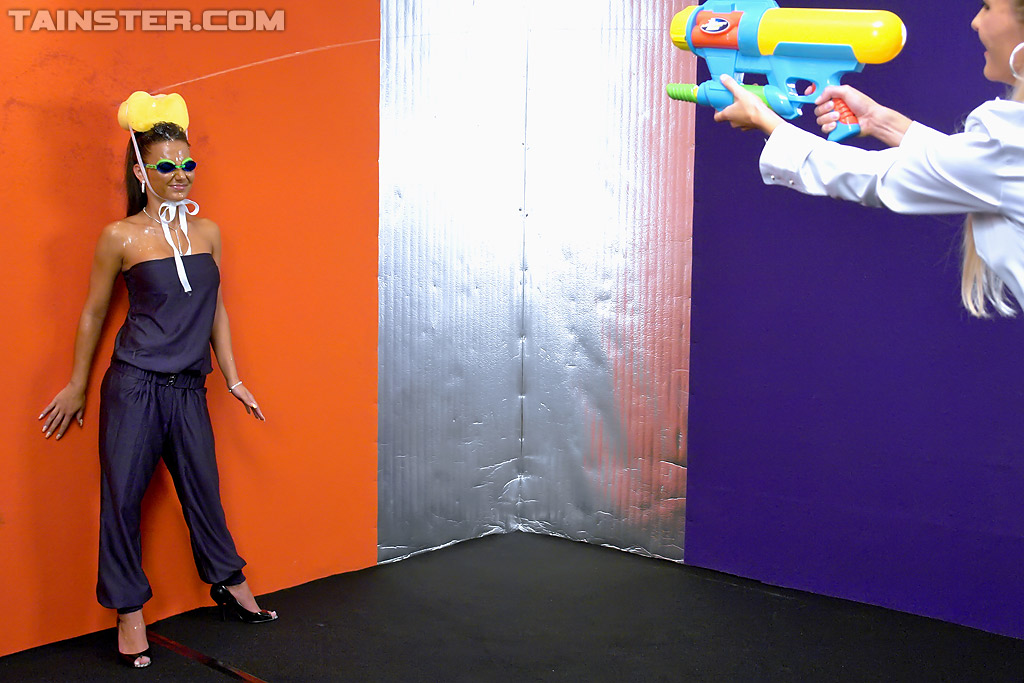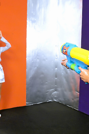 Laura Crystal Plays With Water Pistol And Finally Gets Wet From Top To Toe