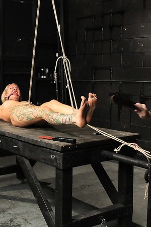Remote Control Is In Master's Hands As Tied Blonde Rain DeGrey Rides The Sybian
