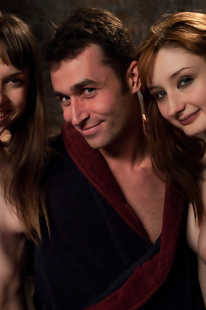 Two blonde babes naked and in kinky bdsm while Chanel Preston orders and stimulates them.