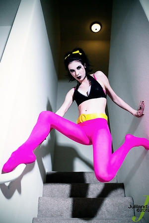Fetish Loving Alex Chance Posing In Kinky Clothes While Sliding Her Hands Down Her Massive Tits.